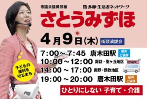 2026年4月9日 / 最終更新日 : 2026年4月9日 tama トピックス 4月10日(金)の予定 いよいよ残すところ2日間。天気予報は雨。雨にも負けず、地域を駆け抜けます! FacebookXBlueskyHatenaCopy