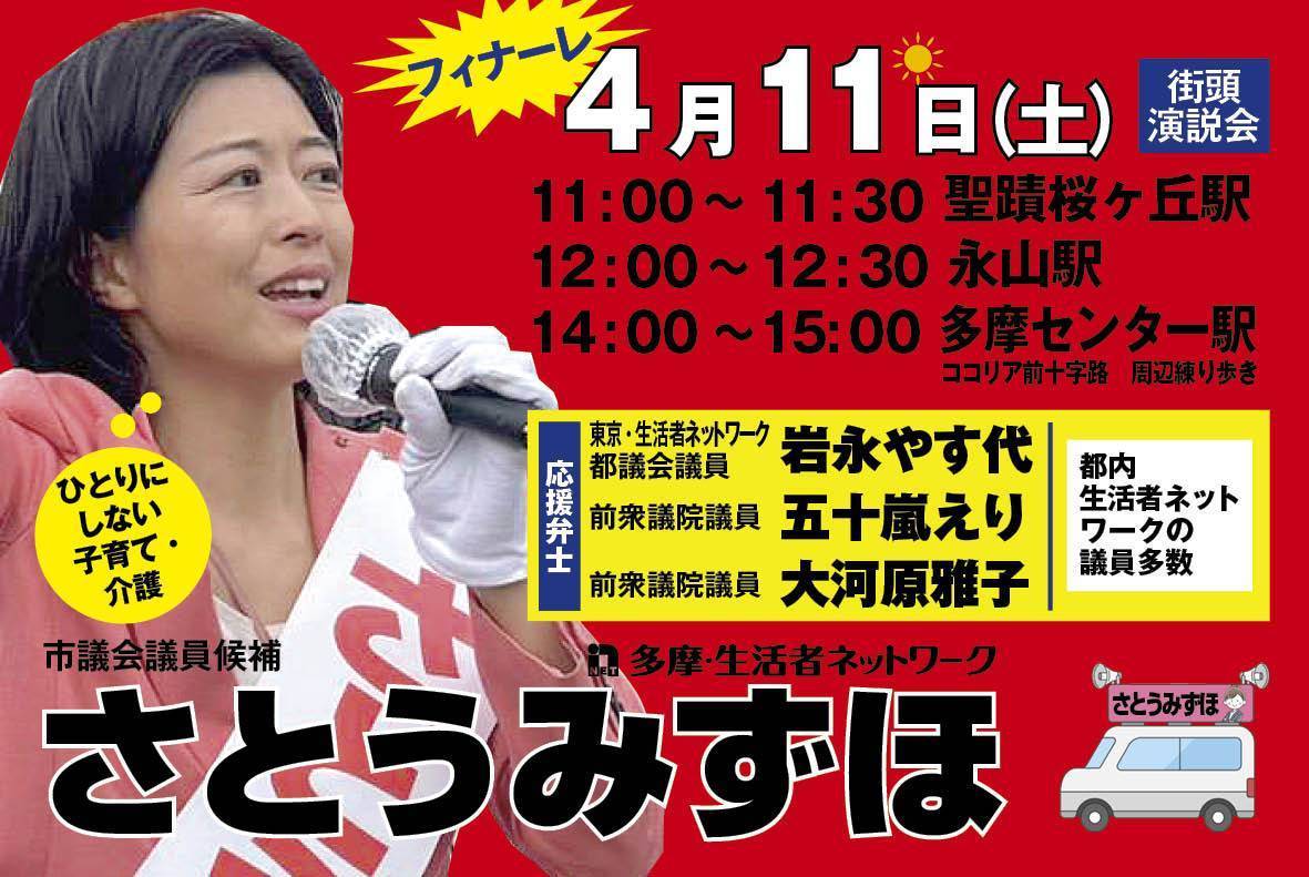 2026年4月11日 / 最終更新日 : 2026年4月11日 tama トピックス 4月11日(土)最終日の予定 最終日のお知らせ。最後の最後まで地域をめぐり、政策を訴えて参ります! FacebookXBlueskyHatenaCopy